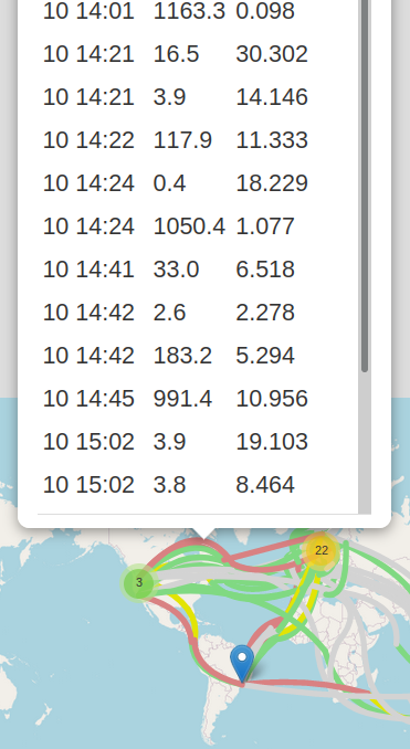 indicating a turbulent network situation. (coloumn 2 is seconds outage))